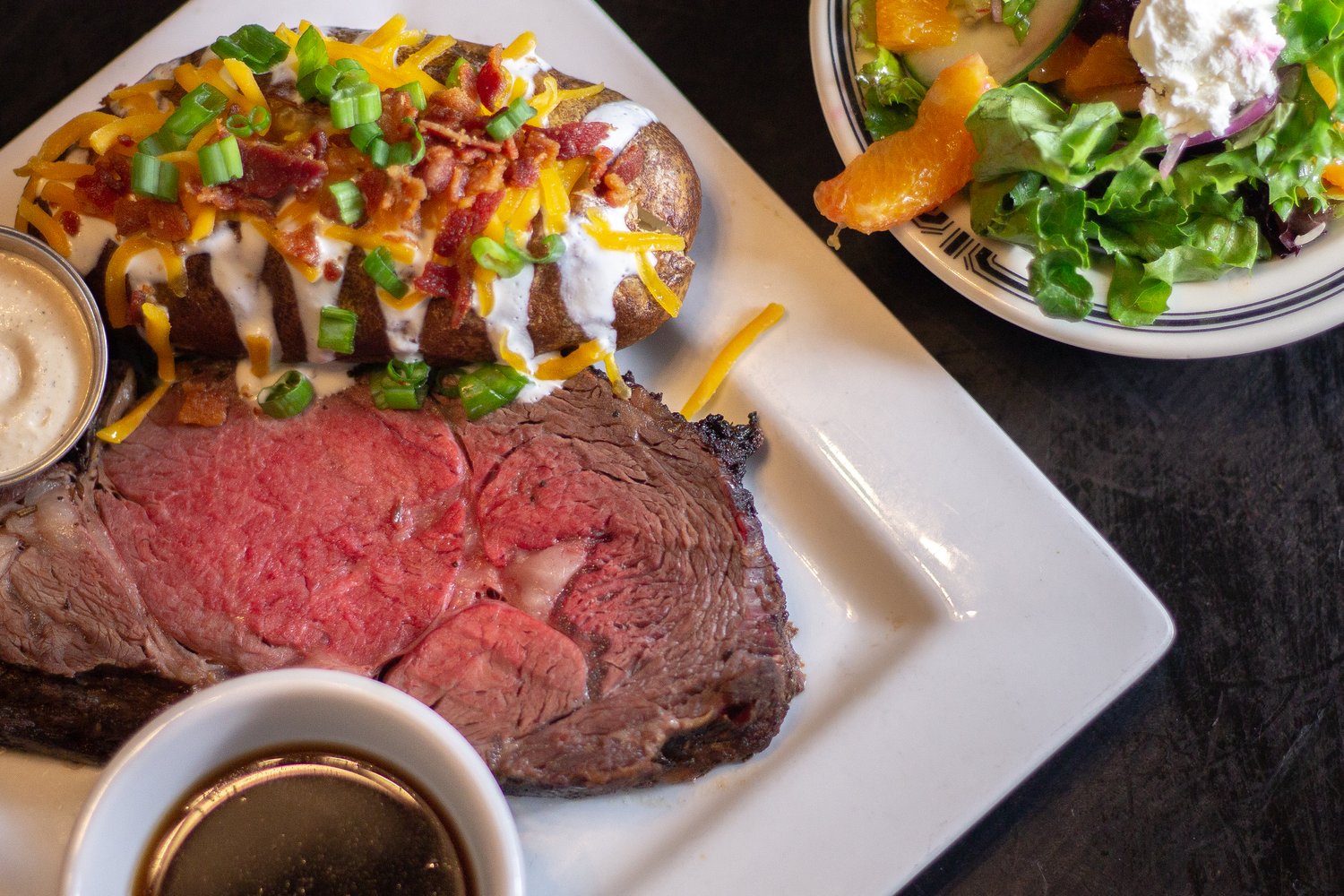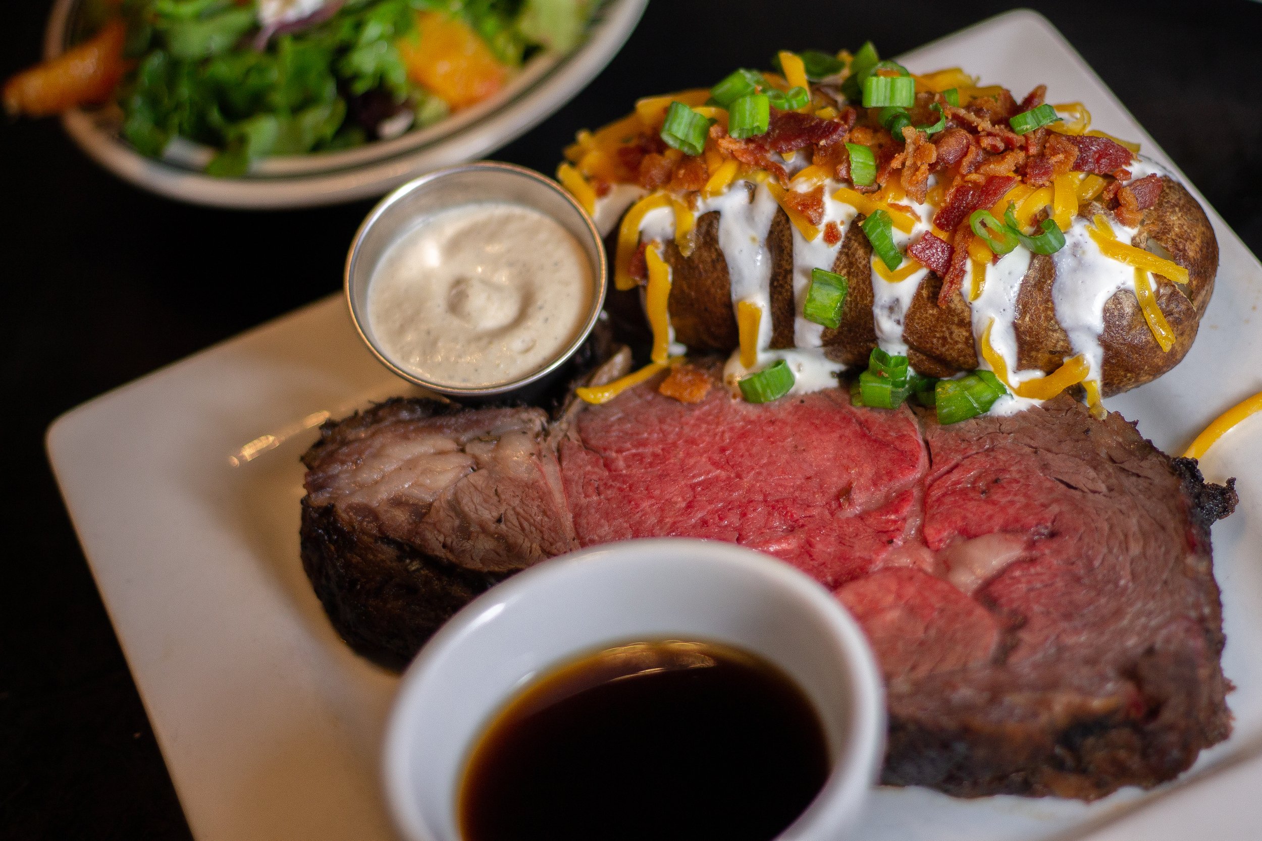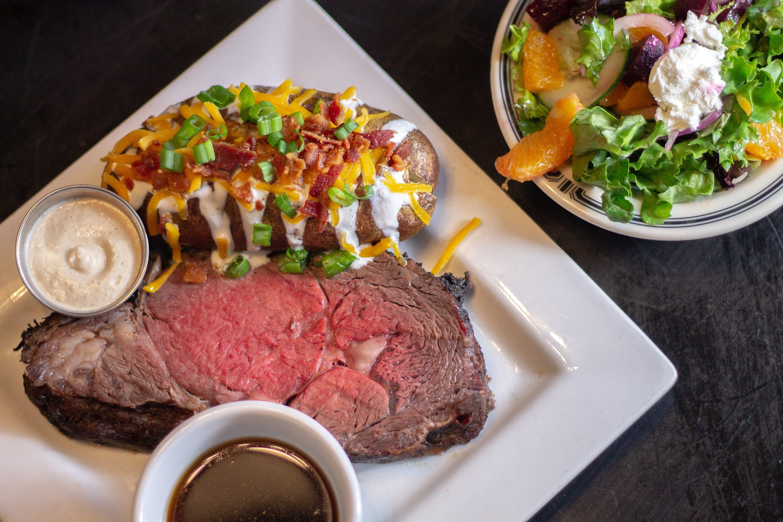 14 oz cut | loaded baked potato | au jus | horseradish sauce | side salad